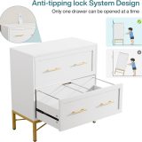 Crafted from high-quality wood, this file cabinet not only provides durable storage but also adds a touch of sophistication to any room. The sleek white finish is complemented by chic gold accents, creating a modern and stylish look that elevates your workspace decor.